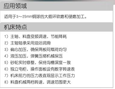 本機(jī)床系加工鋼球的專用機(jī)床,適用于直徑3~25mm鋼球的軟磨和硬磨加工。